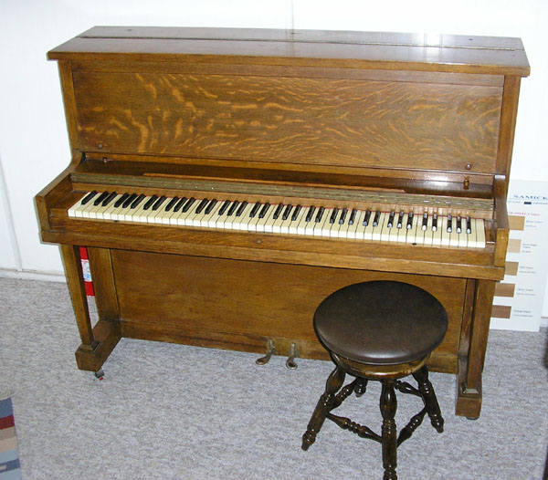 • Comments: This Studio piano has been re-pinned with all new tuning pins and is holding a tuning like a new piano. A fine piano for beginner or advanced players. We decided to repin this since it has such a beautiful voice and was worth investing the time and materials! Includes stool.